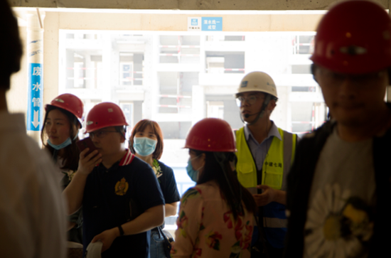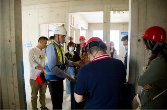 随后各位参访嘉宾通过干净整洁的工地现场进入到正在建设施工当中的楼体中,亲眼见证样板工程的建筑美学展示。