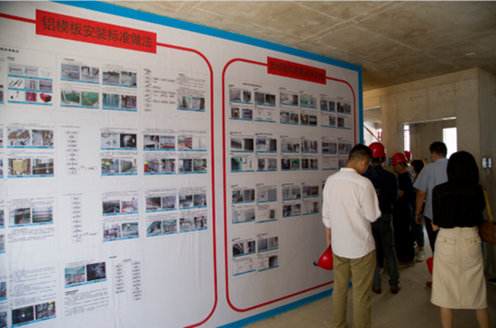 接下来大家进入到“样板质量区”,在这里由中建七局的安排专业工程技术人员为大家详细讲解了在紫荆名都项目中采用的一些已成熟应用的最新施工工艺;