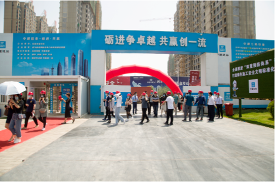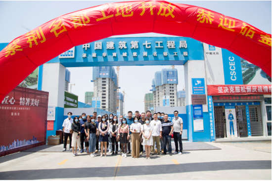 在施工现场大门处,各位媒体嘉宾在签名墙上一 一留下了自己的签名,随后在中建七局相关领导及接待人员的陪同下鱼贯通过闸机进入施工现场,各位参访嘉宾皆被干净整洁的施工现场所吸引。